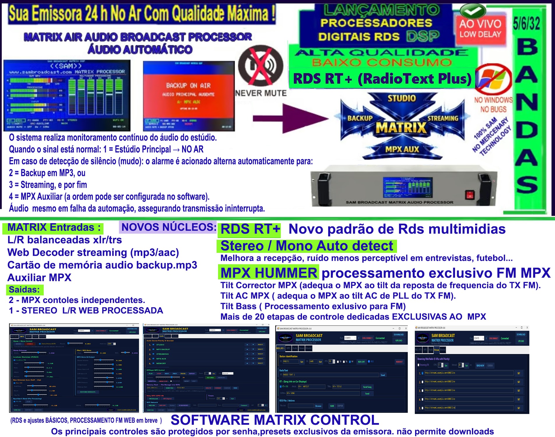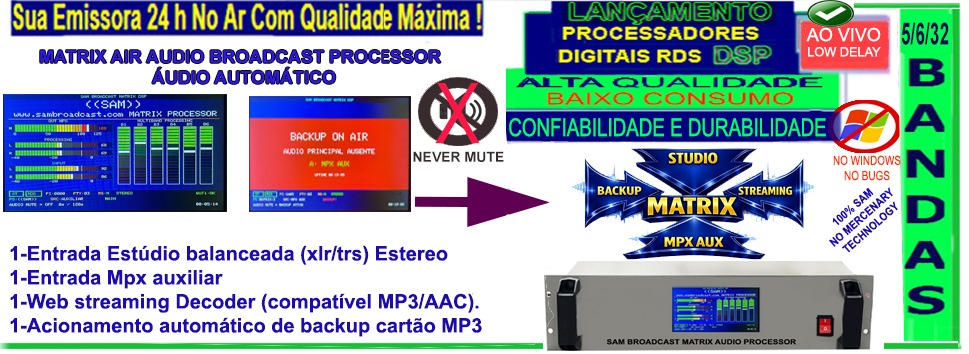 Transmissor de Radio Comunitária Homologado Anatel SAM BROADCAST TECHNOLOGY Transmissor FM Rádio Comunitária,Transmissor de Rádio Comercial, Transmissor de Rádio Educativa, Transmissores TV Homologados pela Anatel, Mesas de Áudio Profissional, Antenas, Maleta Para Transmissão Esportiva, Retorno Sem Fio, Chave Híbrida, Amplificador linear... SAM TUDO PARA SUA EMISSORA Módulos amplificadores ,placas pll,transmissores de Tv , transmissores de 25 watts, 50 watts 100 watts ,150 watts 250 watts ,300 watts , 500 watts ,600, watts , 1.000 watts botinas, mpx broadcast,mpxbroadcast,umpx,micrompx,stereotools,breakawayone,multiplexbroadcast,mpxbroadcast.com,mpxbroadcast.com.br,multiplexbroadcast.com.br,micompx, micrompxbroadcast,sambroadcast.com,sambroadcast.com.brprocessamento digital fm linkmpx. .